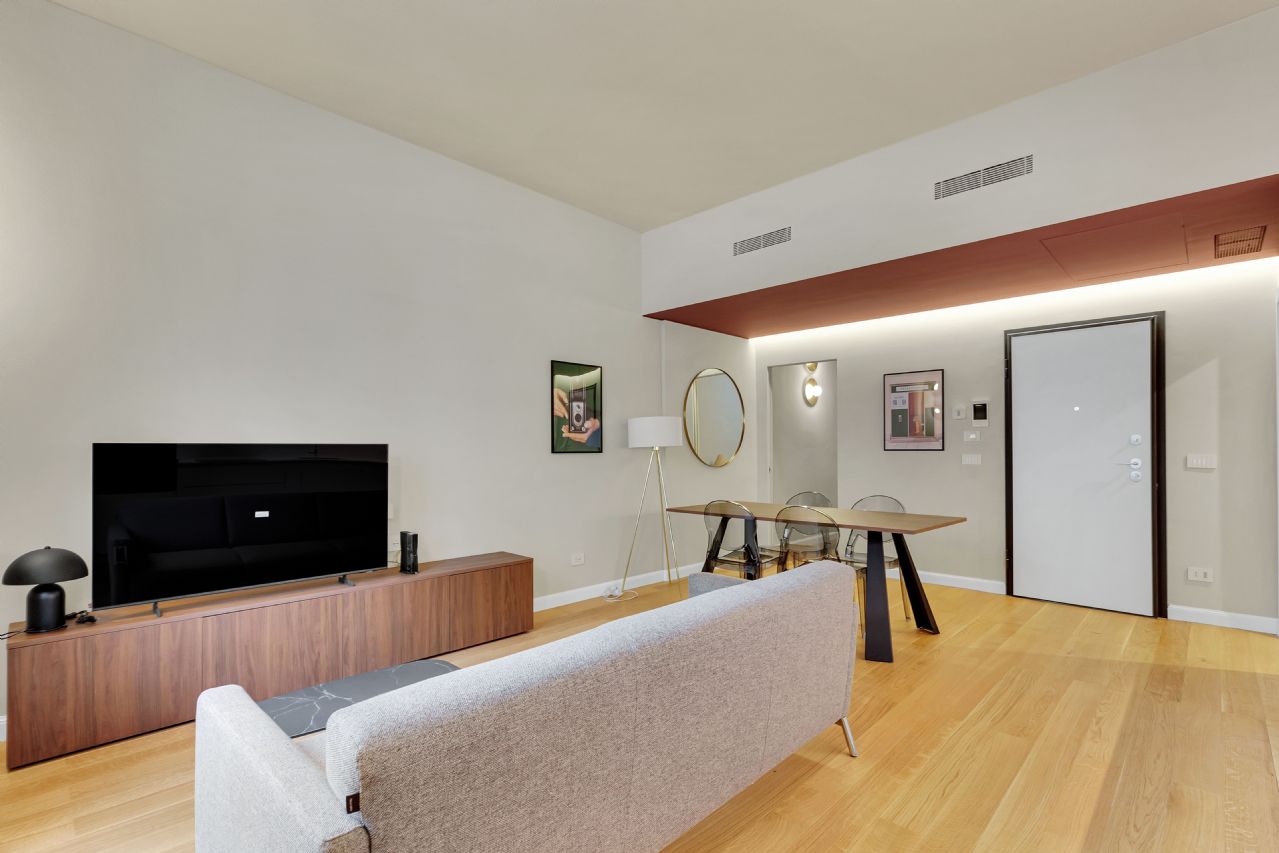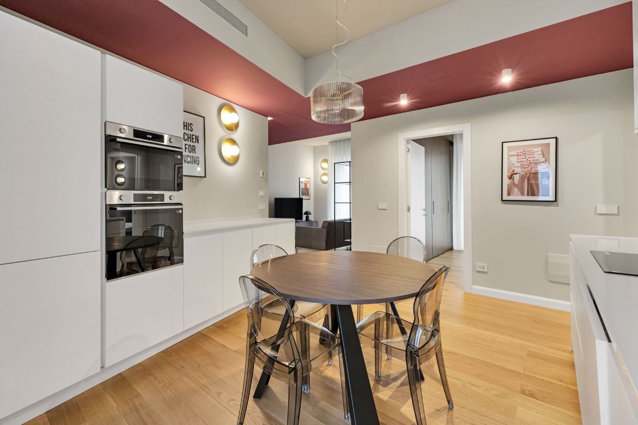 Trilocale di prestigio in affitto con vista nel quartiere della Darsena. Zona living con cucina open space, suite matrimoniale e stanza singola. Completa l'appartamento l'arredamento fisso e mobile.
