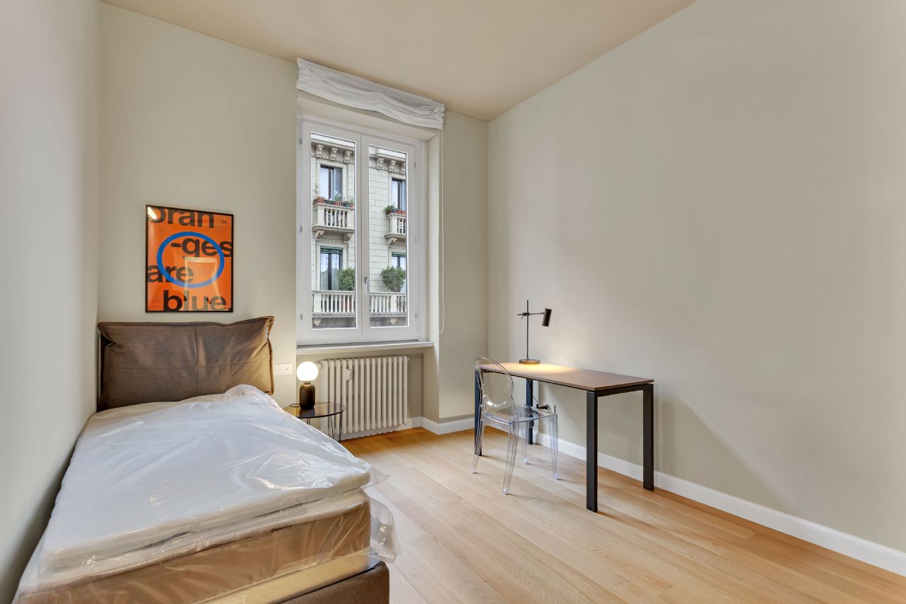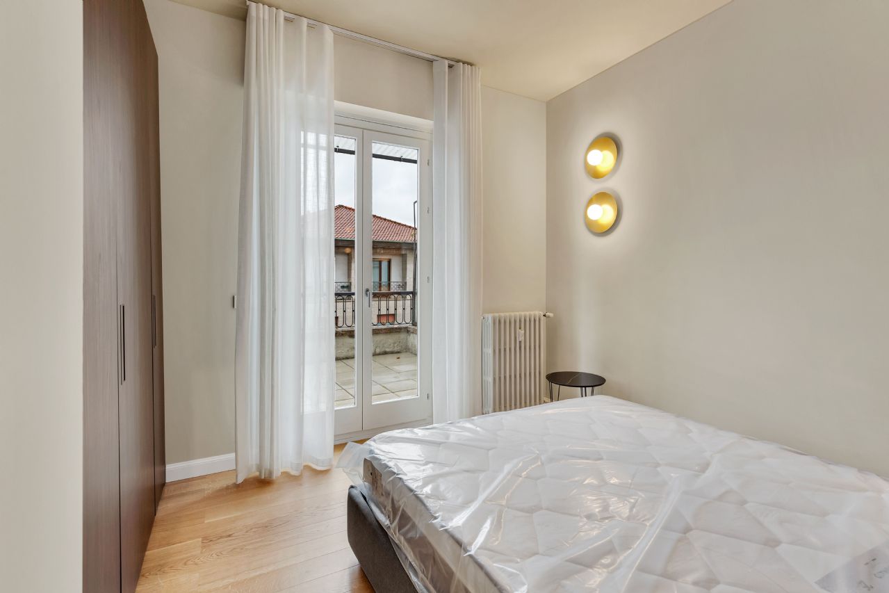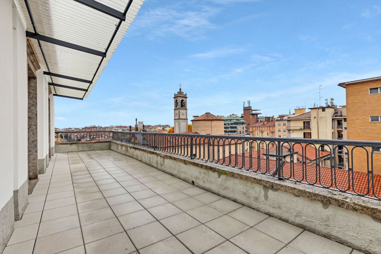 Esclusivo ed ampio trilocale con balcone e terrazzo panoramico in posizione centrale con affaccio su Corso San Gottardo e su una silenziosa corte interna. Con cucina separata dal soggiorno, camera matrimoniale e camera singola. Completo di arredo fisso e mobile.