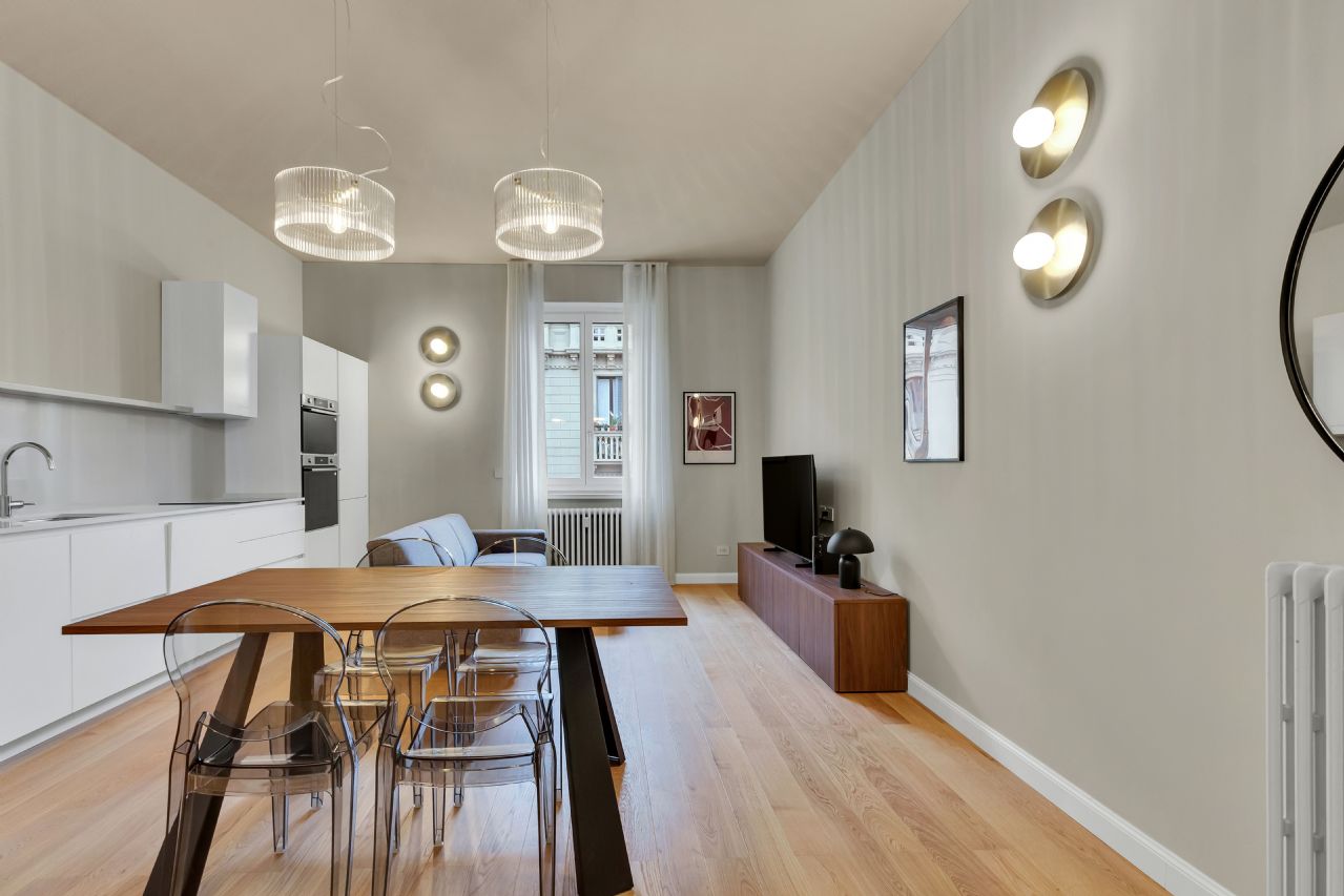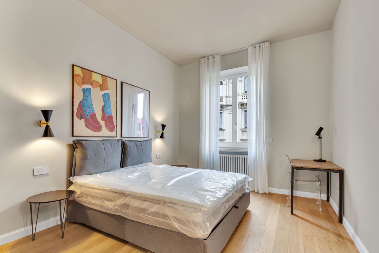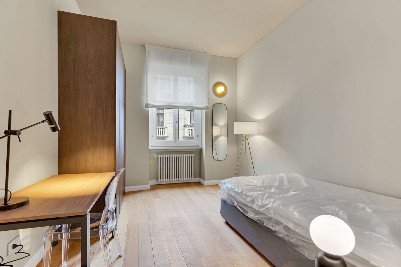 Esclusivo ed ampio trilocale con balcone e terrazzo panoramico in posizione centrale con affaccio su Corso San Gottardo e su una silenziosa corte interna. Con cucina separata dal soggiorno, camera matrimoniale e camera singola. Completo di arredo fisso e mobile.