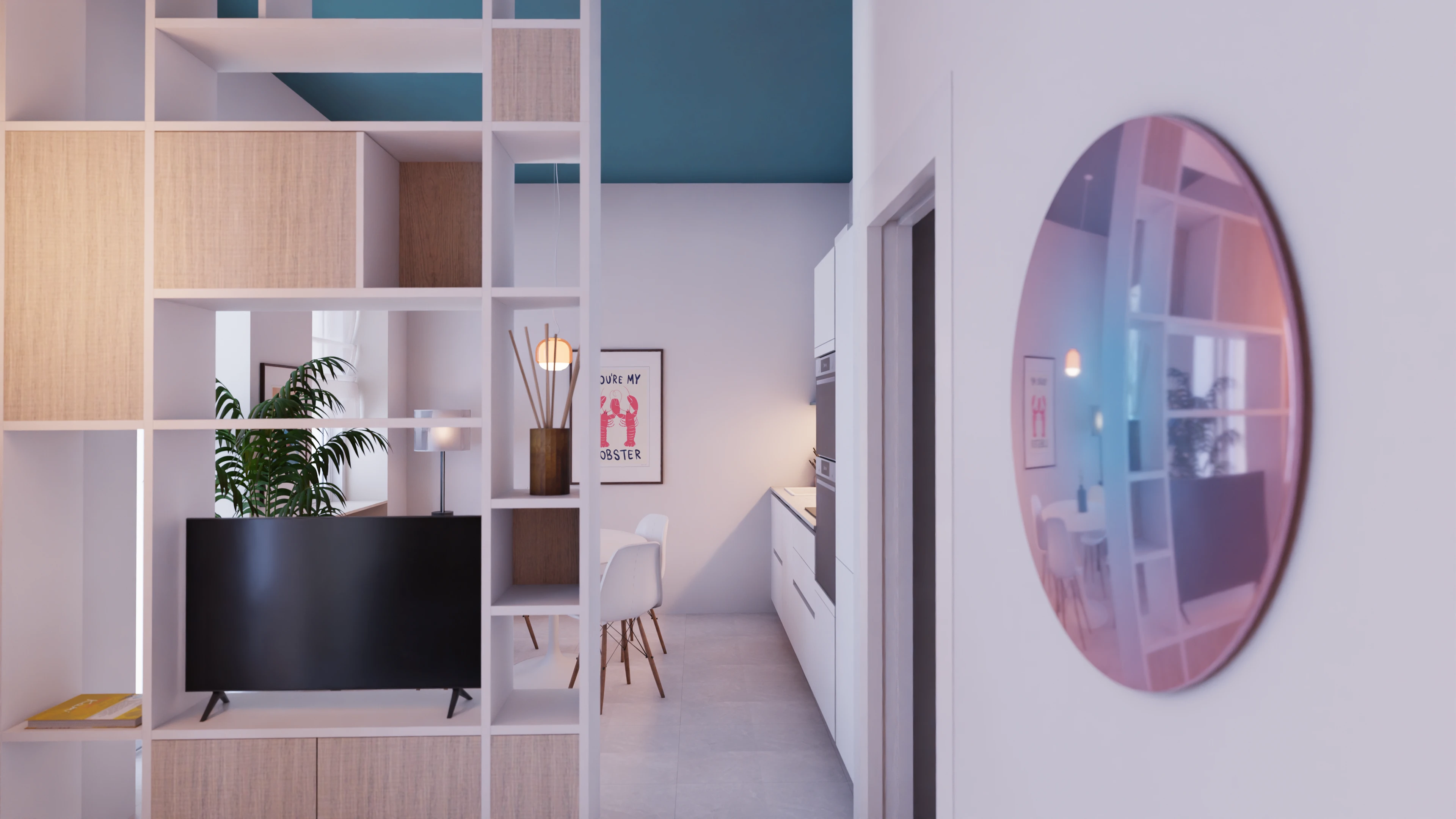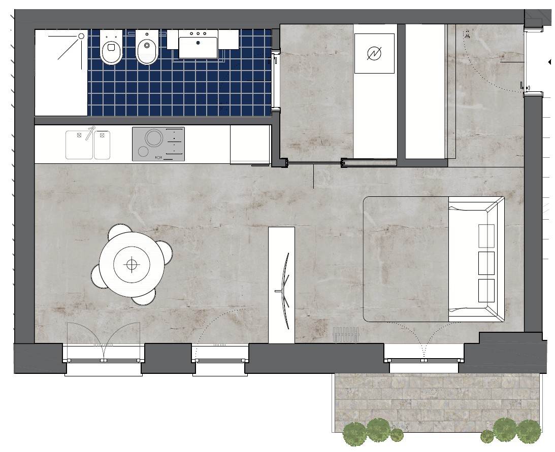 Monolocale luminoso con cucina attrezzata e camera matrimoniale. Progettato per offrire un ambiente elegante e funzionale in una posizione centrale.